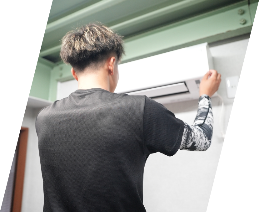 ルームエアコンや業務用エアコンの取付・脱着・移設・洗浄、そして給湯器・エコキュートの新設・交換、トイレや洗面などの衛生設備工事まで、すべて自社施工による一貫対応。